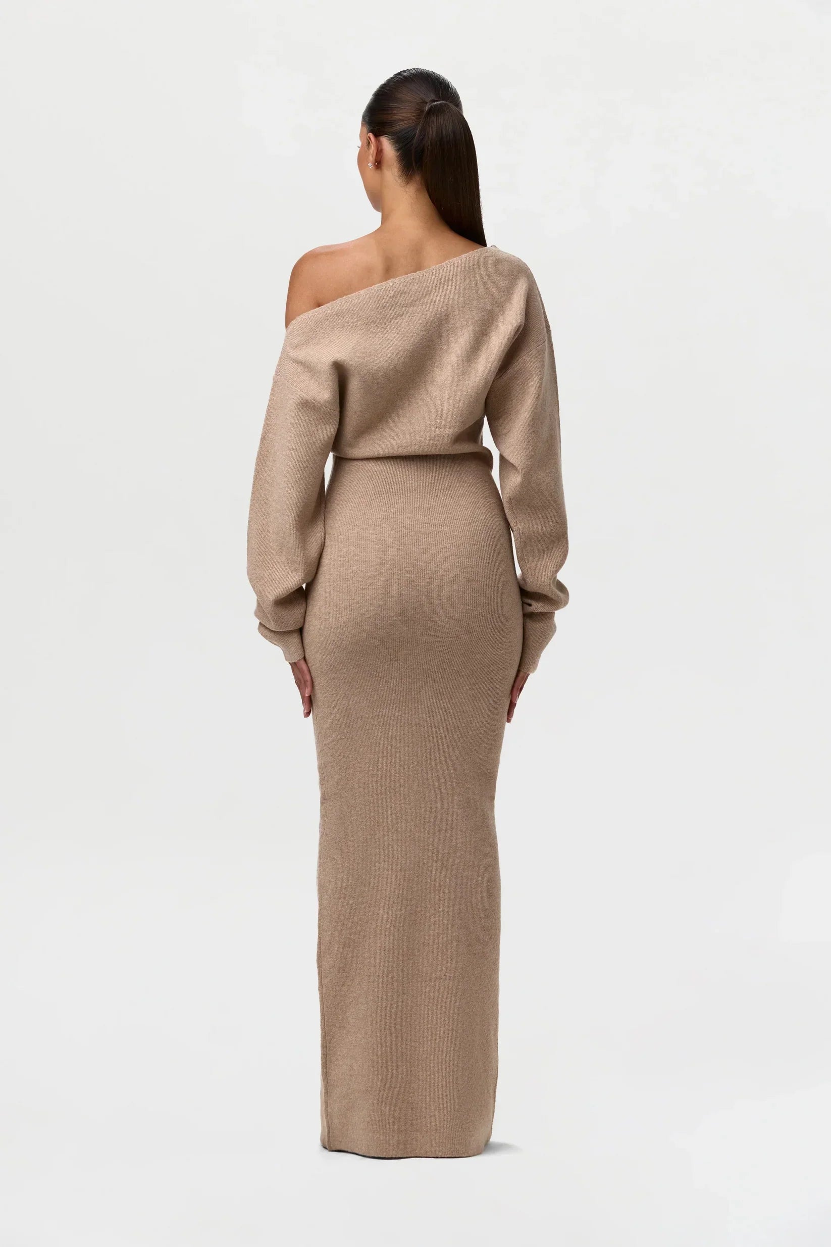 The perfect mix of cozy and chic. This ultra-soft knit maxi dress features a relaxed off-shoulder neckline and a smooth, body-skimming fit that flatters without feeling tight. Effortless, elegant, and made to move with you—your new go-to for cold-season style.