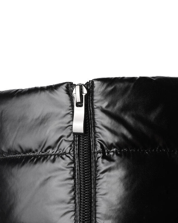 A smooth, reflective outer layer creates a refined winter look supported by flexible quilting for natural movement. The interior is fully lined with soft fleece for warmth and comfort. A molded treaded sole ensures grip in wet or snowy settings.